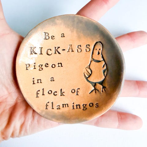 You will get to make two birds each, out of stoneware ceramic clay. Using silicon and rubber stamps you can choose wording and images from a massive array of stamps to personalise your little birds. During the workshop you will choose what colour you'd like your birds glazed. The drying, glazing, and firing process takes place after the workshop, and your birds will be ready for you to collect approximately 2-3 weeks later. Tea, coffee, (and biscuits!) all included.
