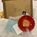 This is a little ceramic art dish with the word 'Cwtch' which means 'Hug' or 'Cuddle' in Welsh; and a little heart imprinted into the clay before it is fired, glazed, and fired again. This is glazed in beautiful red. The glaze used is non-toxic. The plate would only like gentle use and gentle hand washing, no dishwashers!